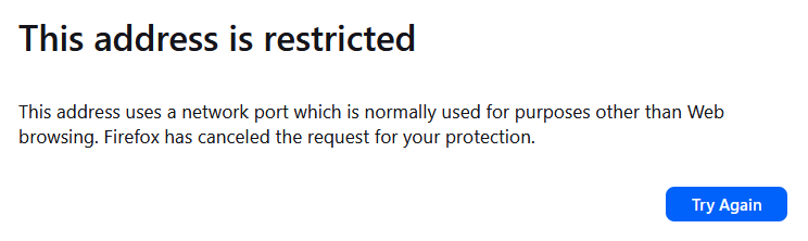 When I setup my Termix instance I used port 6666/tcp. However on my first visit I wasn't greeted with a Termix login page, rather a Firefox message appeared. One I had never encountered before.